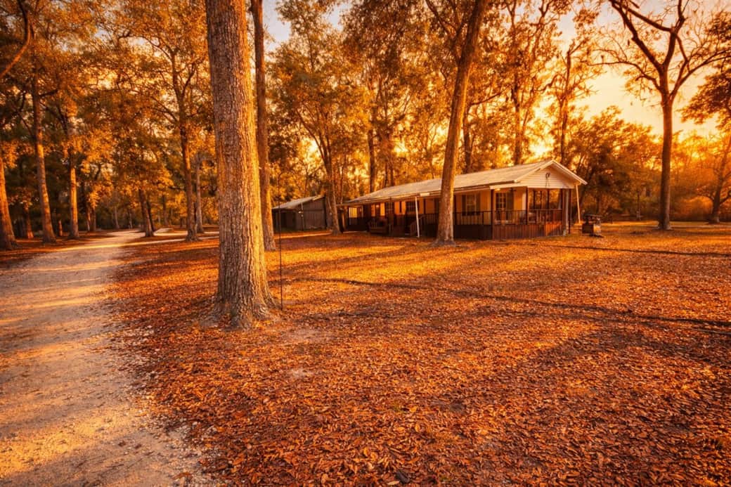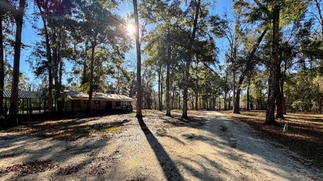 Step out from Bedroom 1 onto a covered porch with Adirondack seating—perfect for morning coffee or winding down at sunset. Surrounded by trees and peaceful views, it’s an easy spot to relax and enjoy the fresh air.